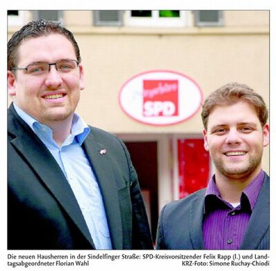 Die Sozialdemokraten haben eine neue Bleibe in Böblingen. Seit vergangener Woche residieren sie in der Sindelfinger Straße 8 – im Doppelpack: Im ehemaligen Frisörsalon hat sich nämlich nicht nur die Kreisgeschäftsstelle eingerichtet, sondern auch der frisch gekürte Landtagsabgeordnete Florian Wahl mit seinem Bürgerbüro.